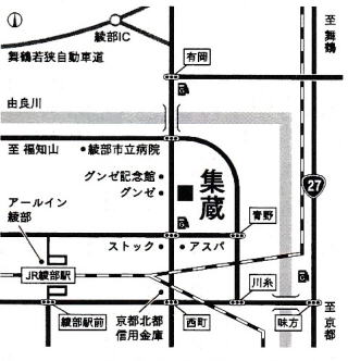 電車で:JR山陰本線 綾部駅より徒歩10分